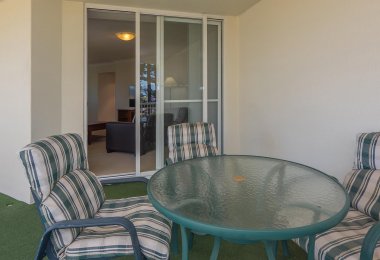 Spacious air conditioned apartment with fully equipped kitchen, laundry facilities, flat screen TV with Foxtel and private balcony with table and chairs.
